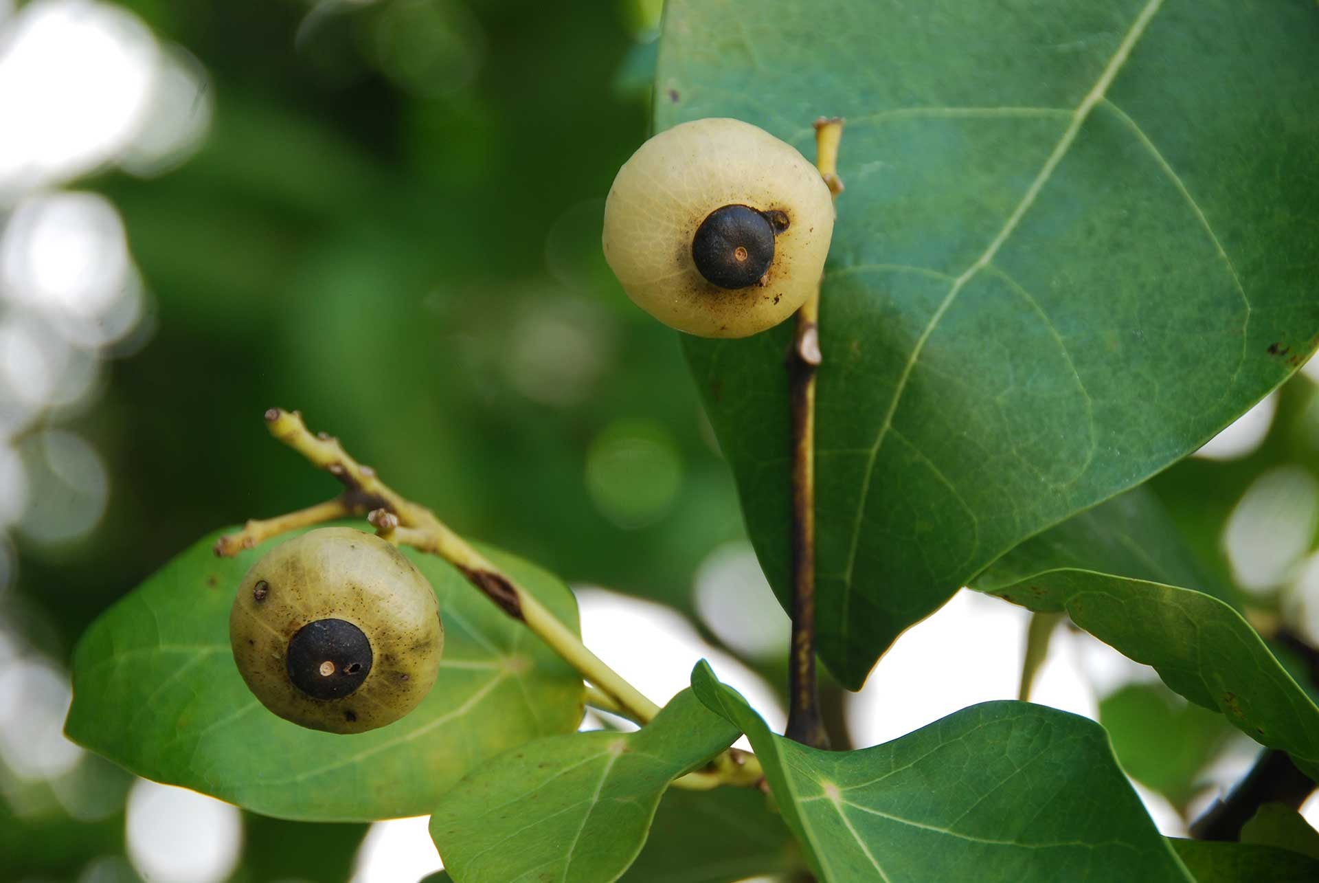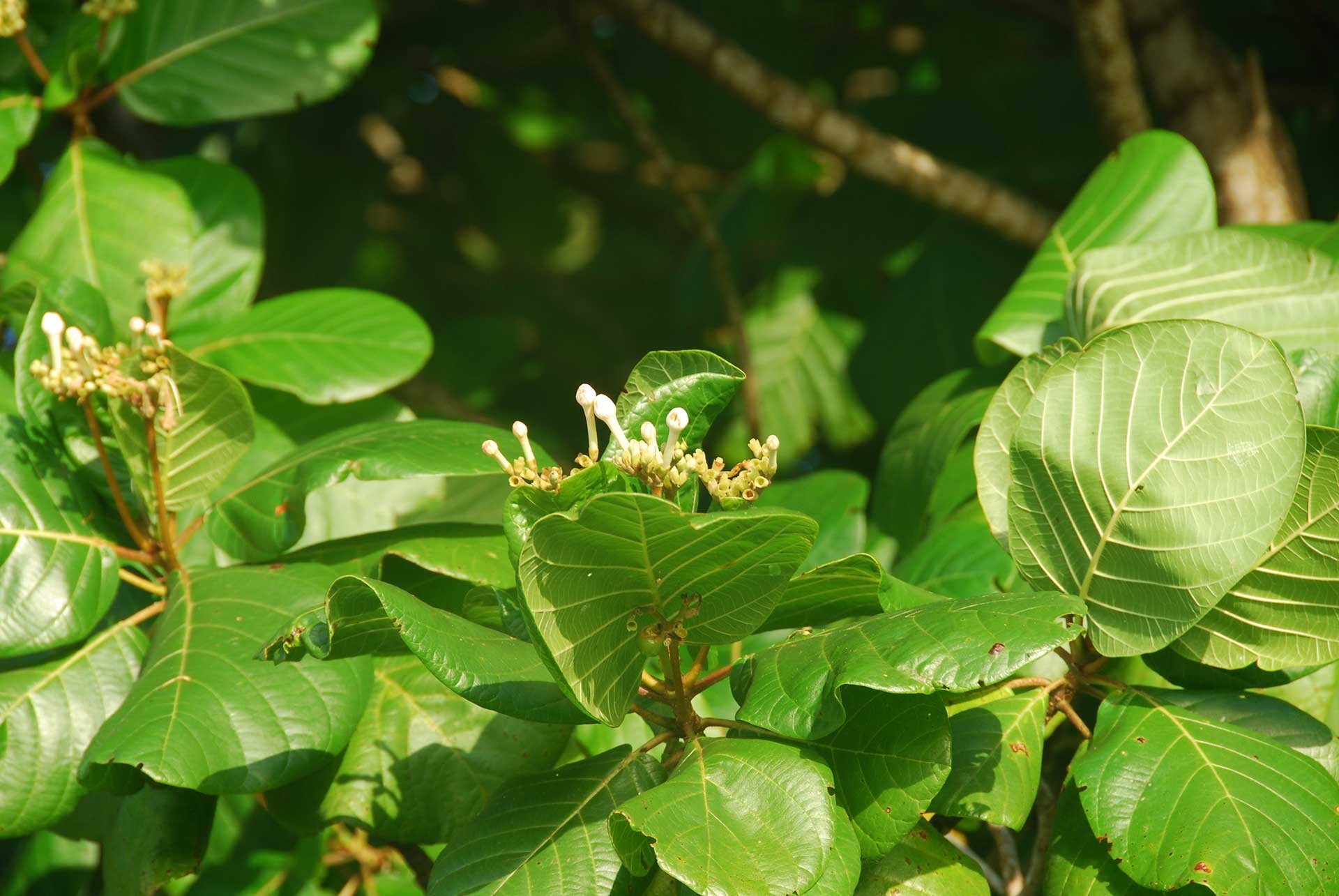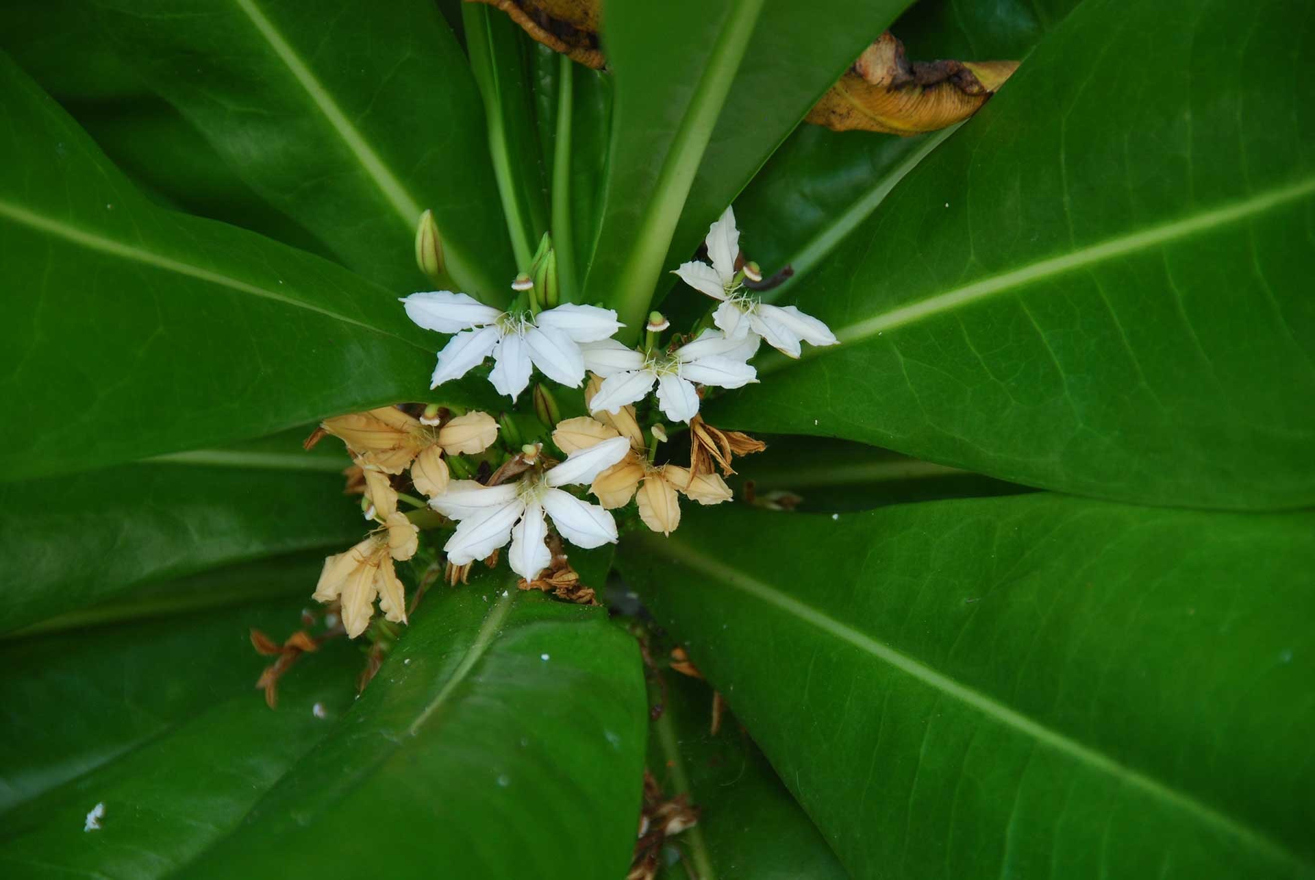 Un arbusto nativo dell’America tropicale, il “Coco plum” (Chrysobalanus icaco, fam. Sapotaceae Fig. 5) ha invaso da tempo ampie superfici collinari disboscate nell’isola di Mahé e fra le erbe esotiche spiccano curiose bellezze ormai intimamente fuse col paesaggio, come la “Jonquille des mers” (Hymenocallis littoralis, fam. Amaryllidaceae Fig. 6) dell’America tropicale e la semicarnivora “Poc-poc” (Passiflora foetida, fam. Passifloraceae Fig. 7), pure neotropica, comune nelle siepi e negli incolti delle isole.