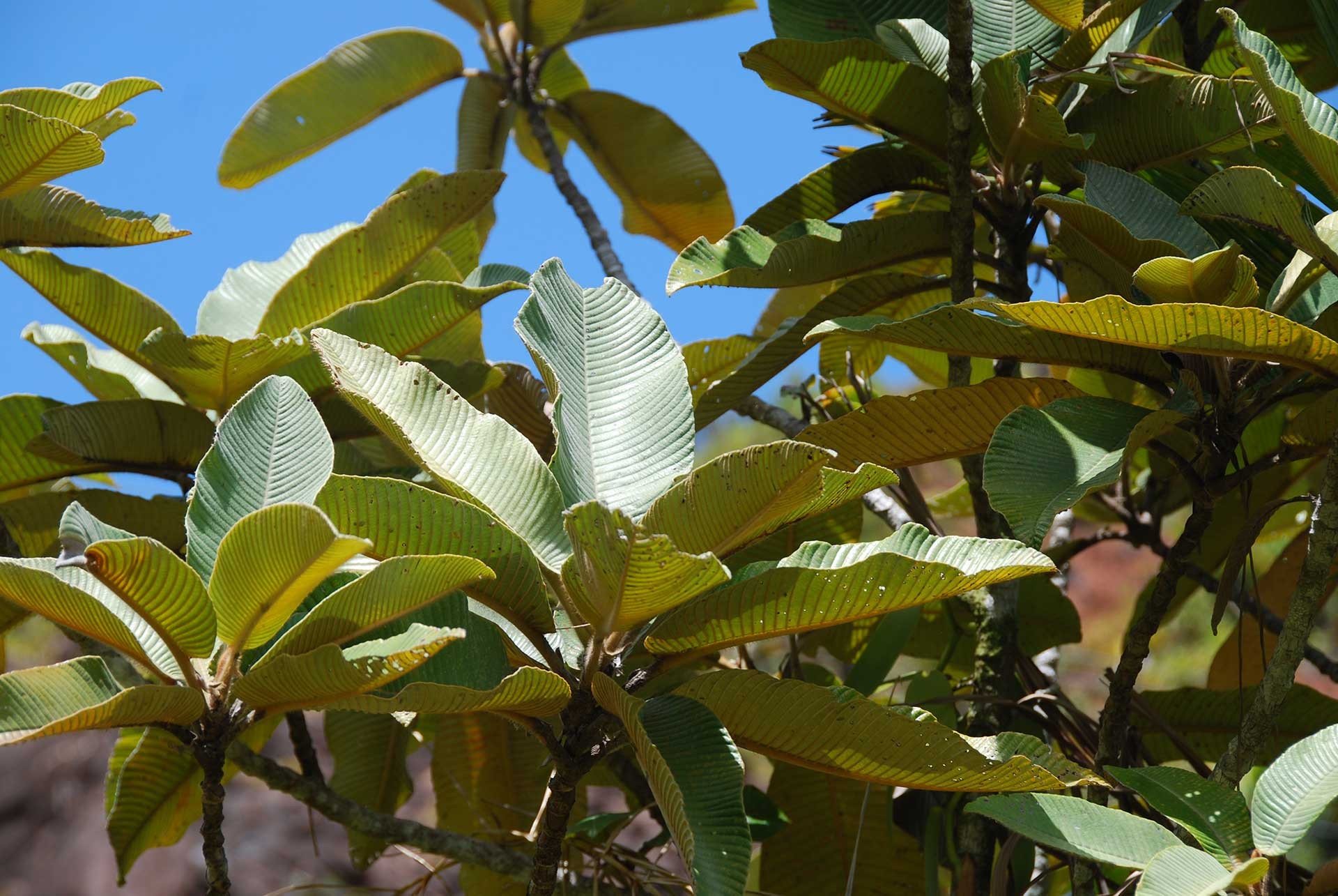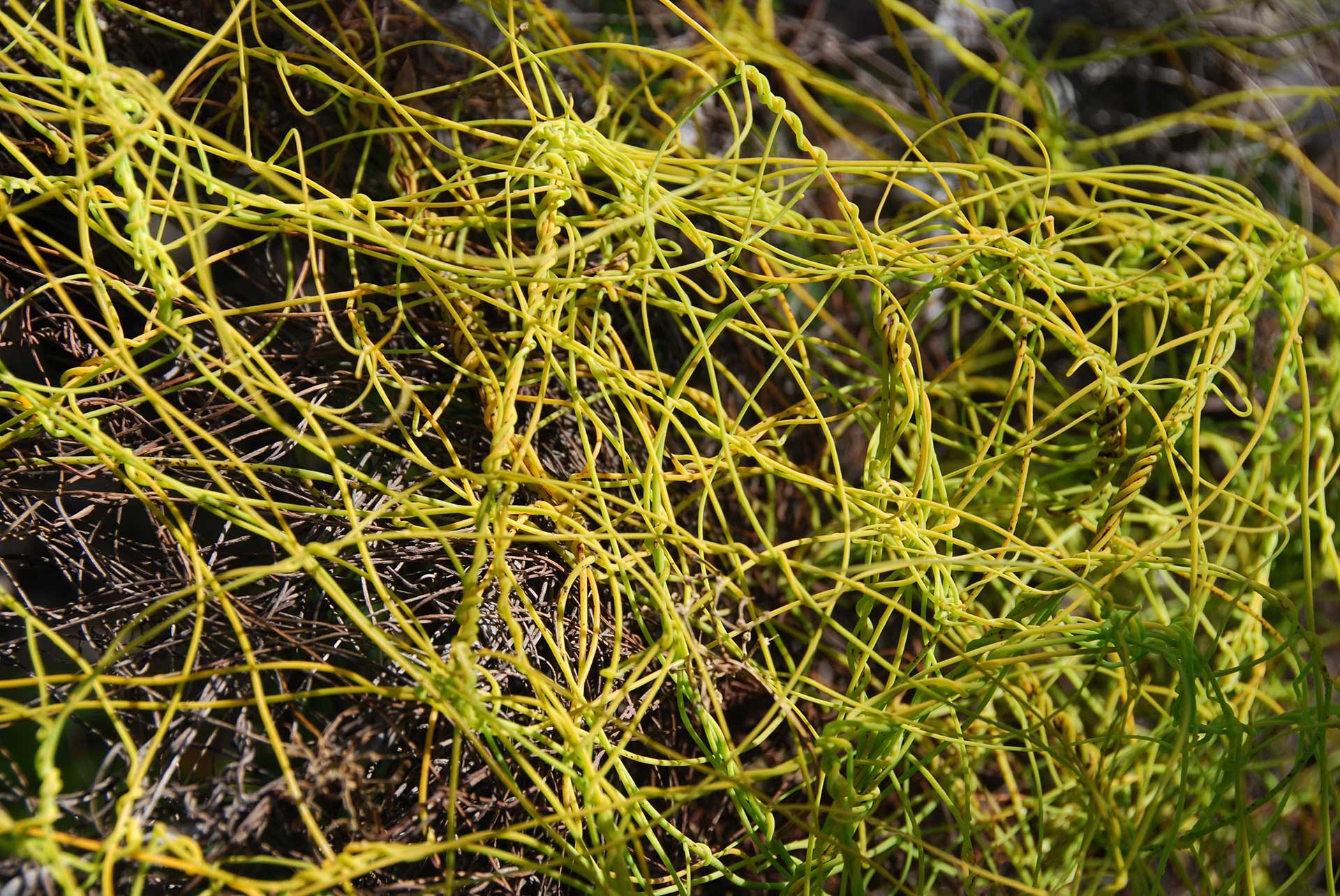 Numerose poi sono le autoctone a larga distribuzione diffuse sui rilievi interni; tra queste ne ricordiamo una sola perché un po’ particolare, la “Liane sans fin” (Cassytha filiformis, fam. Lauraceae Fig. 18) che ai Caraibi, dove è ritenuta possedere virtù afrodisiache, viene chiamata “Vid del amor”. È una liana parassita diffusa in tutti i tropici, con foglie ridotte a invisibili squamette, priva di clorofilla, consistente in un intrico di fili giallastri (fusti) abbarbicati alle chiome di alberi e arbusti dai quali succhia la linfa.