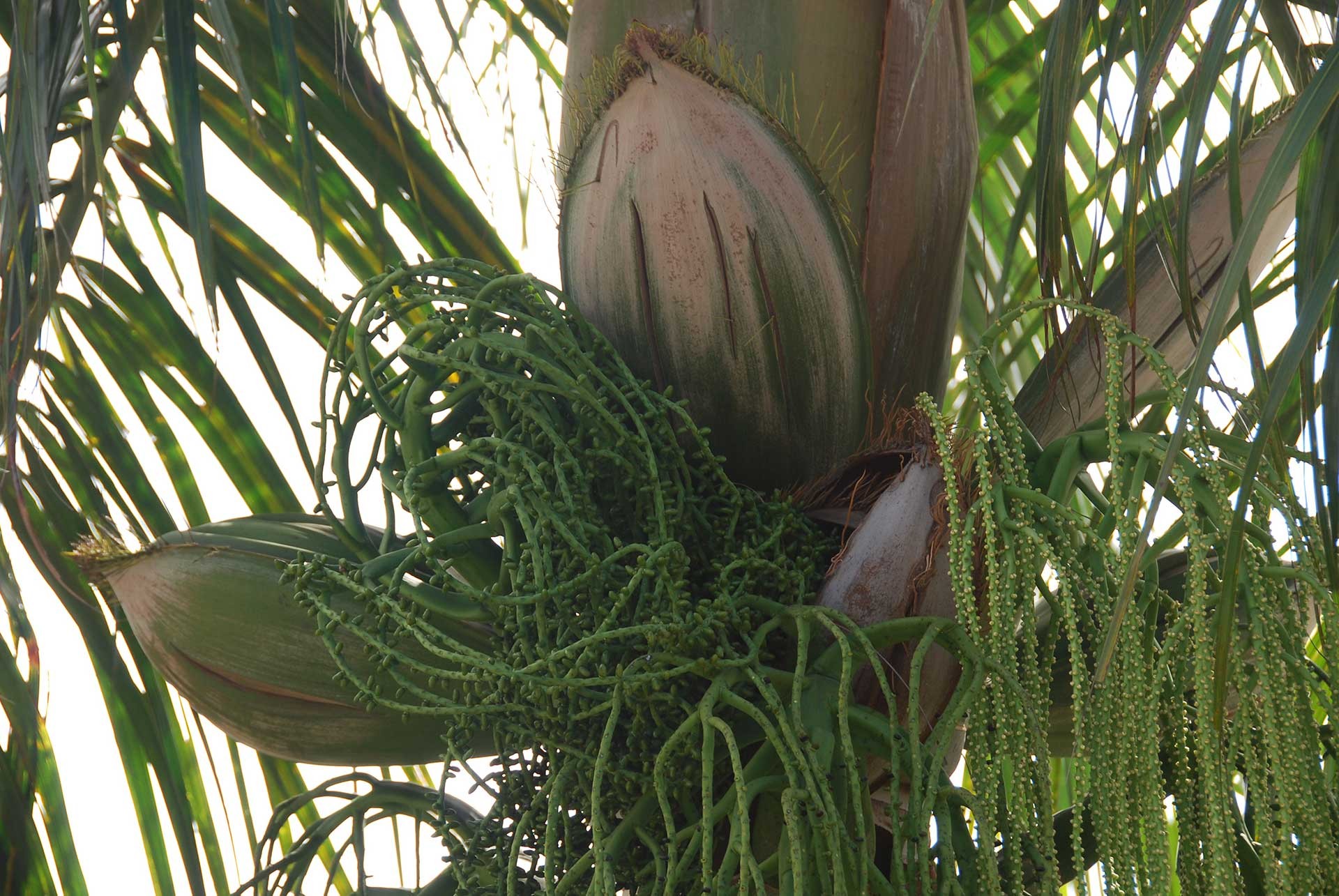 Si tratta di circa 120 unità (fra specie, sottospecie e varietà) esclusive del territorio, biglietto da visita e fiore all’occhiello delle Seychelles. La specie più importante dal punto di vista biologico, evolutivamente isolata e a rischio di estinzione, è un alberello rarissimo e localizzato che cresce a Mahé, Medusagyne oppositifolia (fam. Ochnaceae), ma la più famosa è sicuramente il coco de mer su cui torneremo fra poco; le altre sono perlopiù appannaggio dei botanici, ma meriterebbero almeno in parte di essere fatte conoscere per la loro unicità, bellezza e curiosità. In generale è difficile imbattervisi senza la guida di un esperto attraverso boschi, cime e vallate lontani dagli insediamenti umani. L’endemismo involve numerosi generi (gruppi di specie simili) appartenenti a famiglie diverse e qui il primato spetta alle palme (Arecaceae) con il punteggio record di sei generi endemici: Deckenia (D. nobilis, Fig. 19), Nephrosperma (N. van-houtteanum, Fig. 20), Phoenicophorium (P. borsigianum, Fig. 21), Roscheria (R. melanochaetes, Fig. 22), Verschaffeltia (V. splendida, Fig. 23) e, dulcis in fundo, Lodoicea maldivica (Fig. 24), il mitico coco de mer o cocco delle Seychelles.