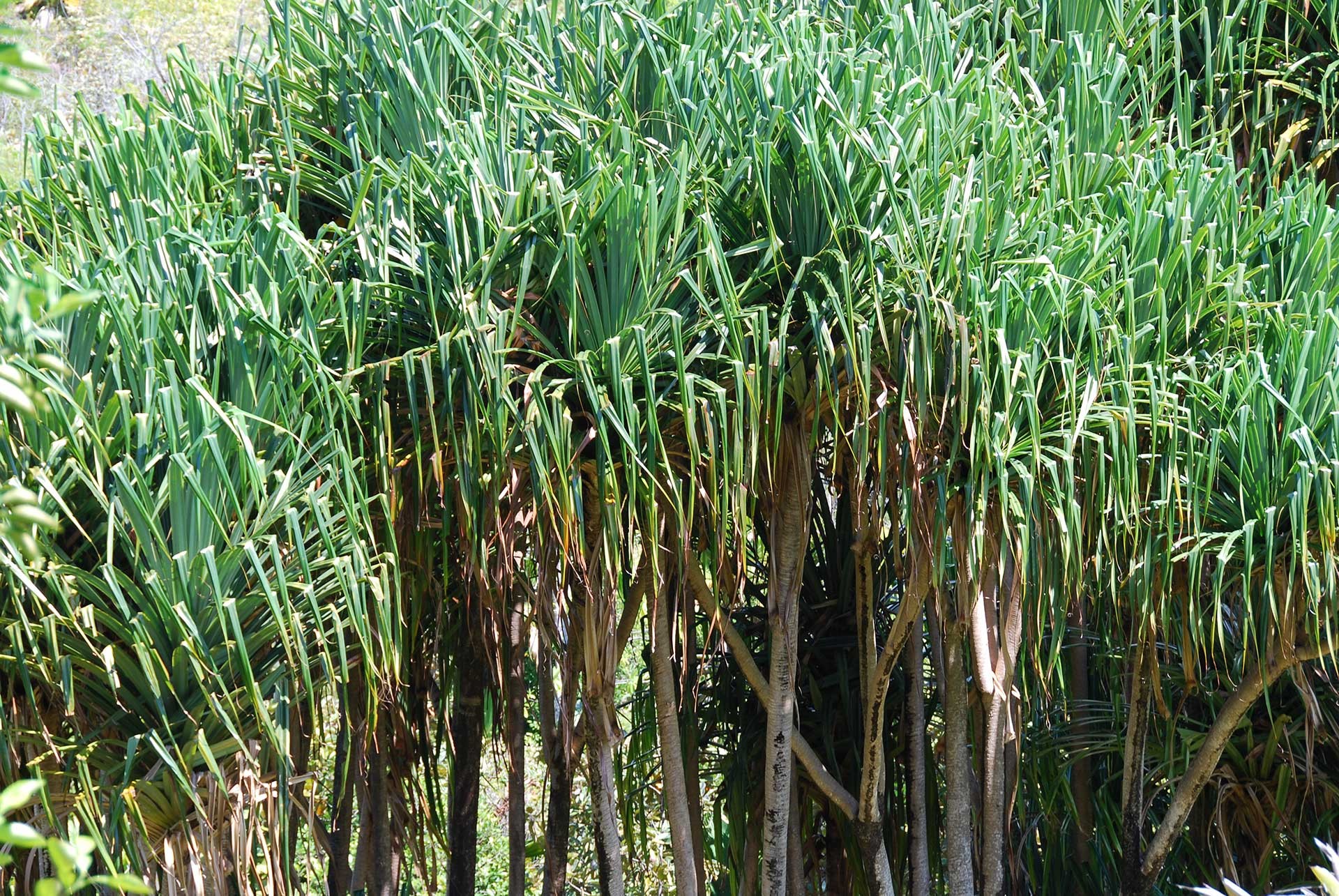 Prima di concludere non dobbiamo dimenticare gli altri importanti endemiti delle Seychelles, quelli che non hanno a che fare con le palme. È impossibile presentarli tutti, ne ricorderemo quattro: due alberi e due erbe fra i più facili da incontrare lungo i comuni percorsi da trekking. Il “Vacoa o Vakwa parasol” (Martellidendron hornei, fam. Pandanaceae Fig. 25), fino al 2003 considerato un Pandanus, poi separato insieme ad altre sei specie dell’oceano indiano occidentale grazie a recenti rivelazioni del DNA. È un magnifico albero simile a una palma ramificata alla sommità, con foglie intere, lunghe strette, seghettate, ricurve e pendenti da una larga chioma tabulare. Il “Bois rouge” (Dillenia ferruginea, fam. Dilleniaceae Fig. 26) ha eleganti foglie dalle vistose nervature ordinatamente disposte in un disegno pettinato e bellissimi fiori a 5-6 petali bianchi contornanti un folto manicotto di stami che circonda una raggiera di stimmi bianchi. Il “Pot à eau” (Nepenthes pervillei, fam. Nepenthaceae Fig. 27) è una liana carnivora con foglie trasformate in ampolle (ascidi) per la cattura e la digestione di piccoli invertebrati; vive alle quote maggiori, dove regna la foresta nebbiosa. Infine un’umile erba - si fa per dire - che ricorda molte delle nostre comuni graminacee con cespi densi di foglie lineari, in questo caso lucido-laccate, in mezzo a cui si elevano lasse pannocchie di spighette verdastre: non ha nome vernacolo, ma si chiama Costularia hornei (fam. Cyperaceae Fig. 28-29), è parente del papiro e si mostra frequentemente in pieno sole nelle aperture e ai margini dei boschi, lungo i sentieri collinari che attraversano le isole da una costa all’altra.