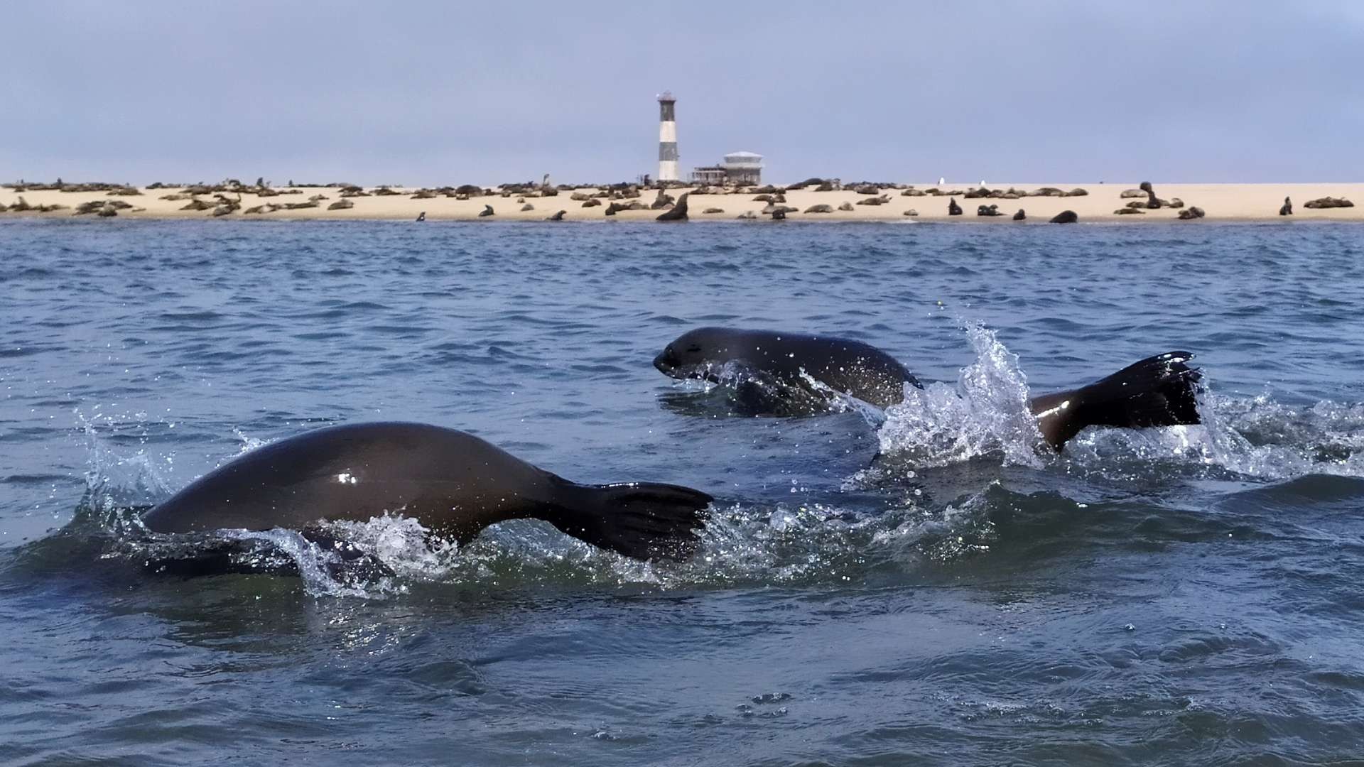 E siamo ad una delle giornate più attese dal sottoscritto, la doppia escursione nei pressi di Walvis Bay. Siamo sull'Oceano Atlantico, qui il clima è molto diverso da quello dell'interno, ai tersi cieli del deserto si sono sostitute le nubi e le nebbie cariche di umidità che hanno donato a questa costa la sua fama sinistra. Il nome Skeleton Coast deriva infatti dai numerosi naufragi dovuti alle pessime condizioni meteo dell'area. Nei secoli nebbie e onde impetuose hanno costellato le spiagge dell'area di relitti, pur se in realtà molti sono ormai scomparsi. Al mattino ci dirigiamo verso Pelican Point, già il solo viaggio è un'avventura, che ha inizio quando l'enorme Toyota che ci trasporta, lascia l'asfalto per inoltrarsi nella penisola sabbiosa da cui partirà la nostra escursione in kayak. Tra la nebbia mattutina, sotto un vecchio faro, spunta una numerosa colonia di otarie. Saranno loro le nostre compagne di giochi, quando per qualche ora avremo l'opportunità di condividerne l'ambiente ed essere oggetto della loro inesauribile curiosità. Essere circondati da decine di otarie che in tutta tranquillità giocano con le nostre pagaie e le nostre imbarcazioni, saltando e guardandoci incuriosite, rimarrà per molti di noi uno dei momenti più piacevoli del viaggio. Ma il pomeriggio non è meno emozionante e ancor più adrenalinico. Cambiamo mezzo e con due simpatici vegliardi locali alla guida dei loro enormi fuoristrada, partiamo verso Sandwich Harbour, una laguna a qualche decina di chilometri dalla cittadina di Walvis Bay, famosa per essere il punto dove le dune più alte del deserto del Namib si gettano a picco sul mare. Percorrere la spiaggia stretta tra i cordoni di dune e l'oceano tempestoso e poi salire e scendere sulle vertiginose pendenze delle dune del deserto alte centinaia di metri è certamente qualcosa che non lascia indifferente anche il più incallito viaggiatore. Il pranzo in cima alle dune, a picco sul mare, con tanto di bollicine e ostriche, è solo la ciliegina sulla torta di una giornata memorabile.