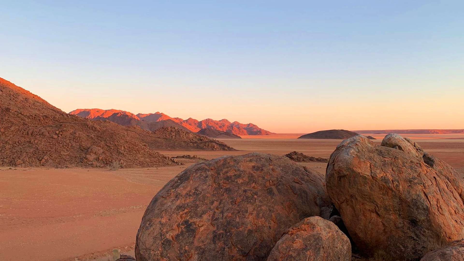 L’indomani procediamo in direzione nord-ovest, non senza aver gustato la famosa torta di mele nel punto di ristoro/fattoria di Solitaire, il cui nome rende omaggio alla sua posizione isolata ai margini del deserto. Superato il Tropico del Capricorno, proseguiamo infine verso la Valle della Luna, dove il suggestivo paesaggio 'lunare' nasconde una rarità botanica presente solo in Namibia, la welwitschia mirabilis, che si dice possa raggiungere oltre i mille anni di età.
