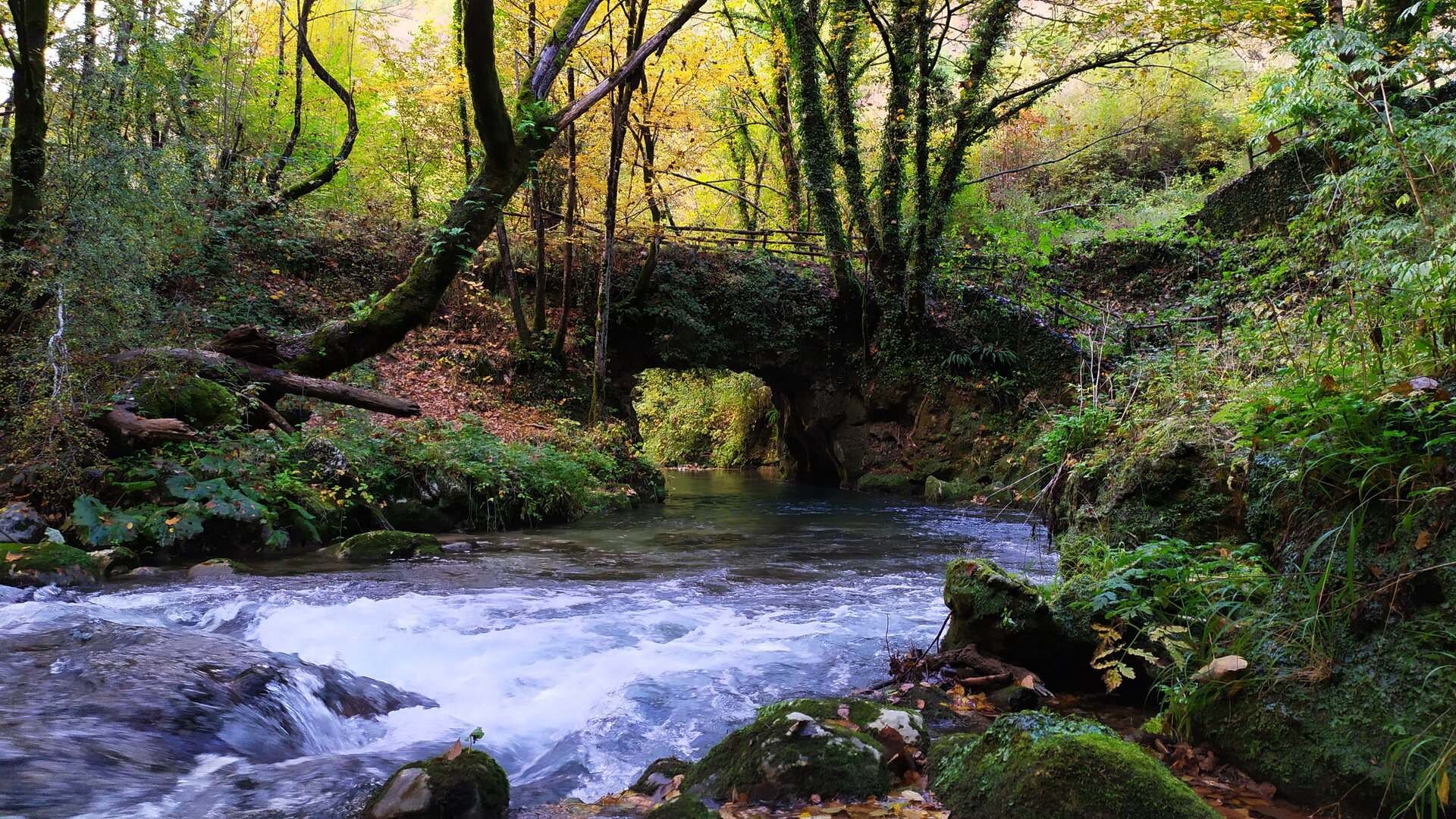 Ancora una prima volta quella al laghetto di San Benedetto che, finalmente libero dalle folle estive, si lascia ammirare in tutta la sua bellezza. Difficile che riesca a resistere al fascino di una sterrata che si perde lontano e così, lasciando la strada asfaltata che prosegue in alto verso Ienne, prendo la carrareccia che corre lungo il fondovalle fino a raggiungere la cosiddetta Mola Vecchia. I mille colori degli alberi che si riflettono sulle acque e la vegetazione riparia che avvolge in un abbraccio mortale il ponte e l’antico mulino, costruito dai monaci benedettini nell'XI secolo, creano un ambiente ricco di magia. E' il tramonto, non riesco a resistere ed in un attimo decido di dormire qui.