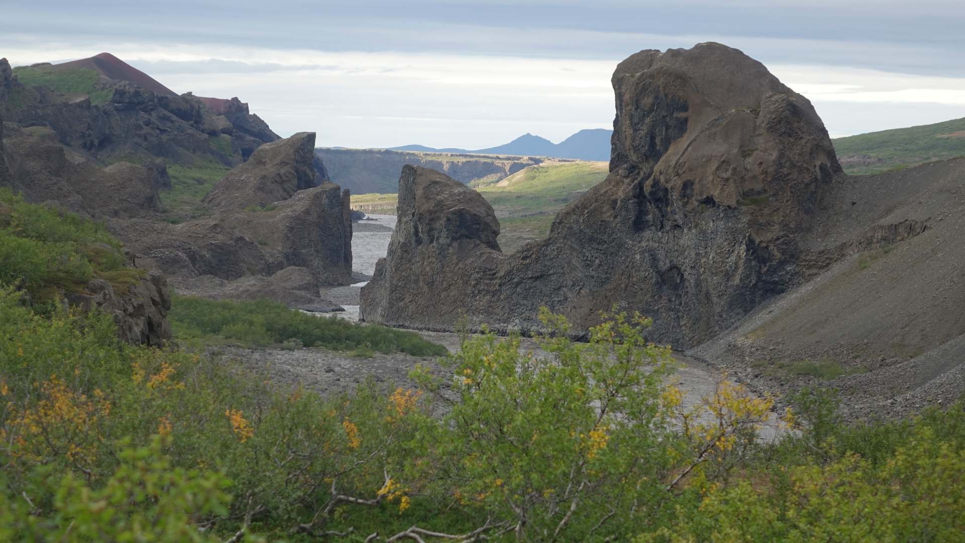 L’ideale è dedicare a quest’area almeno un’intera giornata tanti sono i suoi punti di interesse. Spostandosi verso nord, da visitare è un luogo il cui aspetto delle stranissime formazioni rocciose è particolare tanto quanto il loro impronunciabile nome, Hljóðaklettar.