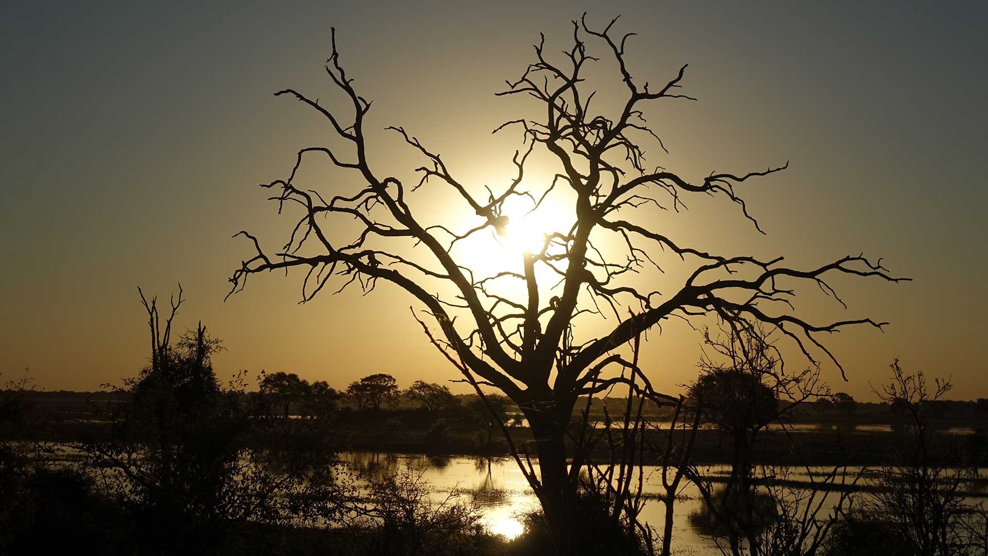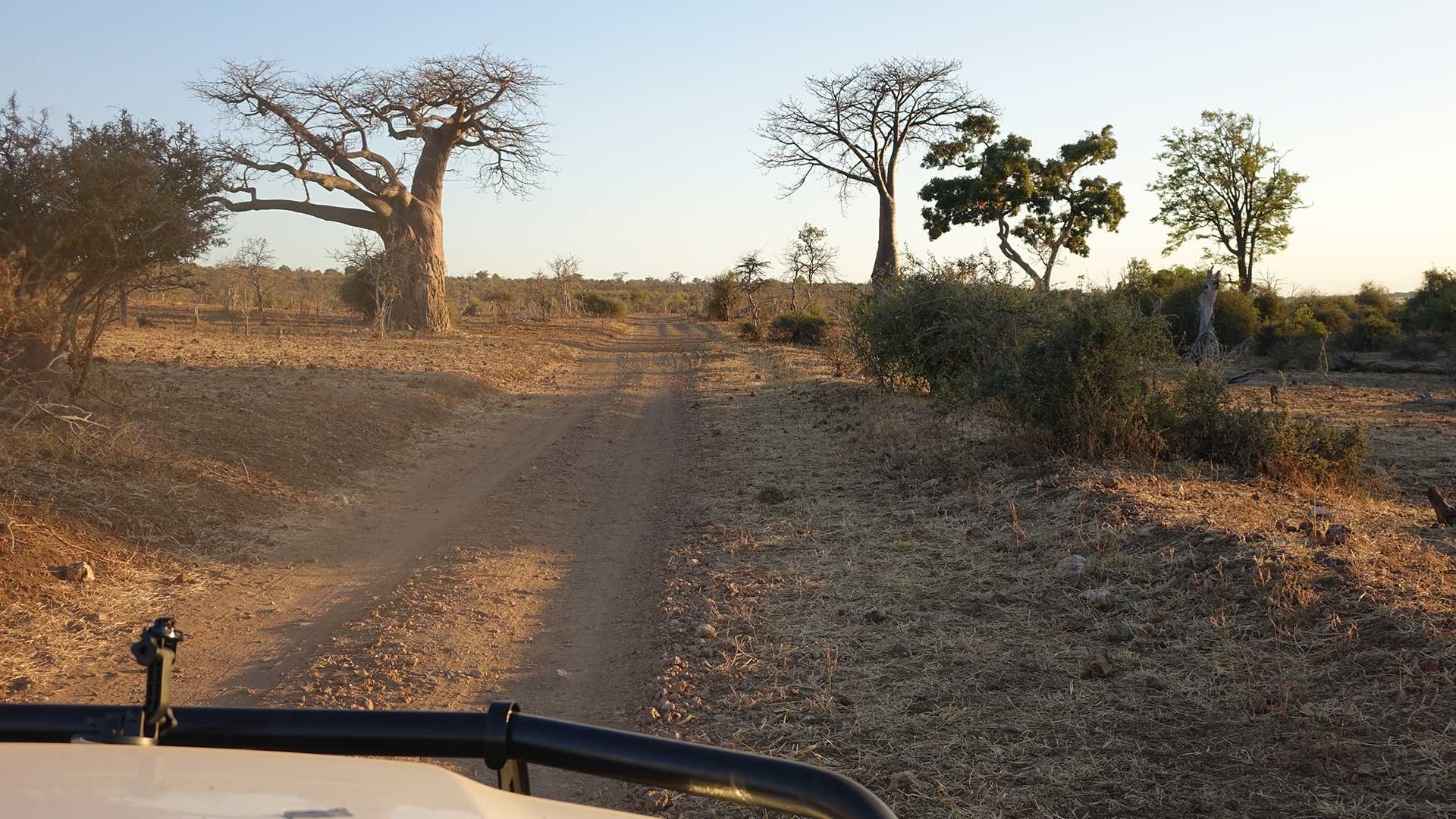 Passano le ore, mancano ormai pochi chilometri. La fitta foresta cede il passo a radure sempre più ampie che grazie alla frescura dell’ora ormai tarda sono ancora più ricche di animali. Il tramonto avvolge i maestosi baobab, i raggi dorati si infrangono silenziosi sulle acque del fiume e impregnano l’aria di una luce che si spegne in pochi istanti.