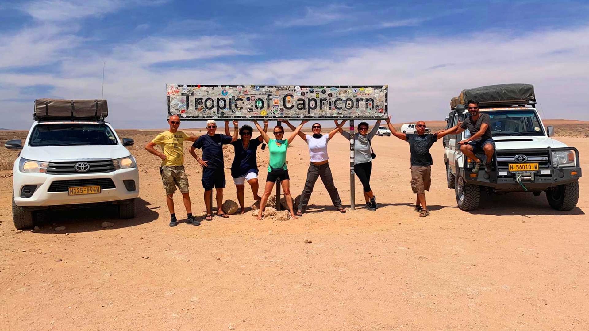 Lasciamo Sesriem in direzione nord-ovest. Dopo qualche decina di chilometri, tempo permettendo, facciamo una sosta nella stazione di servizio/punto di ristoro/fattoria di Solitarie, famosa per la sua torta di mele, per la sua collezione di auto abbandonate e per la sua posizione isolata. Proseguendo, attraversiamo il Tropico del Capricorno e dopo la foto di rito e aver superato l'ultimo passo, eccoci scendere verso la Valle della Luna. Percorriamo la “Welwitschia Drive”, una pista che attraversa un paesaggio brullo ma affascinante, dove è possibile osservare e fotografare una pianta davvero insolita, endemica della Namibia, la Welwitschia Mirabilis, che vanta una media di 1000 anni di vita. Ancora pochi chilometri e siamo a Swakopmund, importante cittadina costiera che conserva la sua atmosfera teutonica.